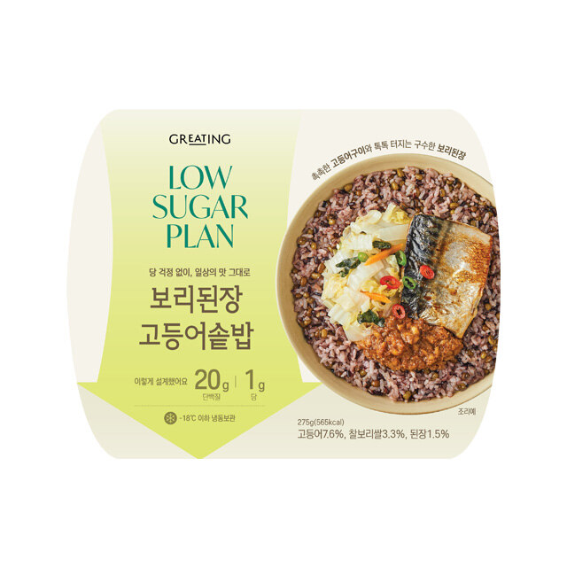 통녹두와 흑미를 넣고 지은 보리된장 고등어 솥밥입니다. 고등어는 300도 이상의 고온에서 포화증기로 구워내 육즙이 가득하고 부드러워요. 고등어의 비린 맛은 마늘, 생강 엑기스로 확실하게 잡아냈죠.