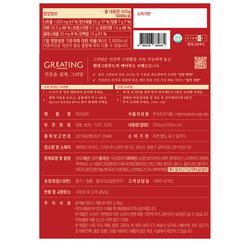 직접 만든 마라장과 굴소스, 두반장으로 맛을 낸 그리팅 마라샹궈를 소개해요. 넛맥, 스타아니스(팔각) 등의 향신료와 마라 특유의 맵싸한 향이 입안 가득 느껴지죠.