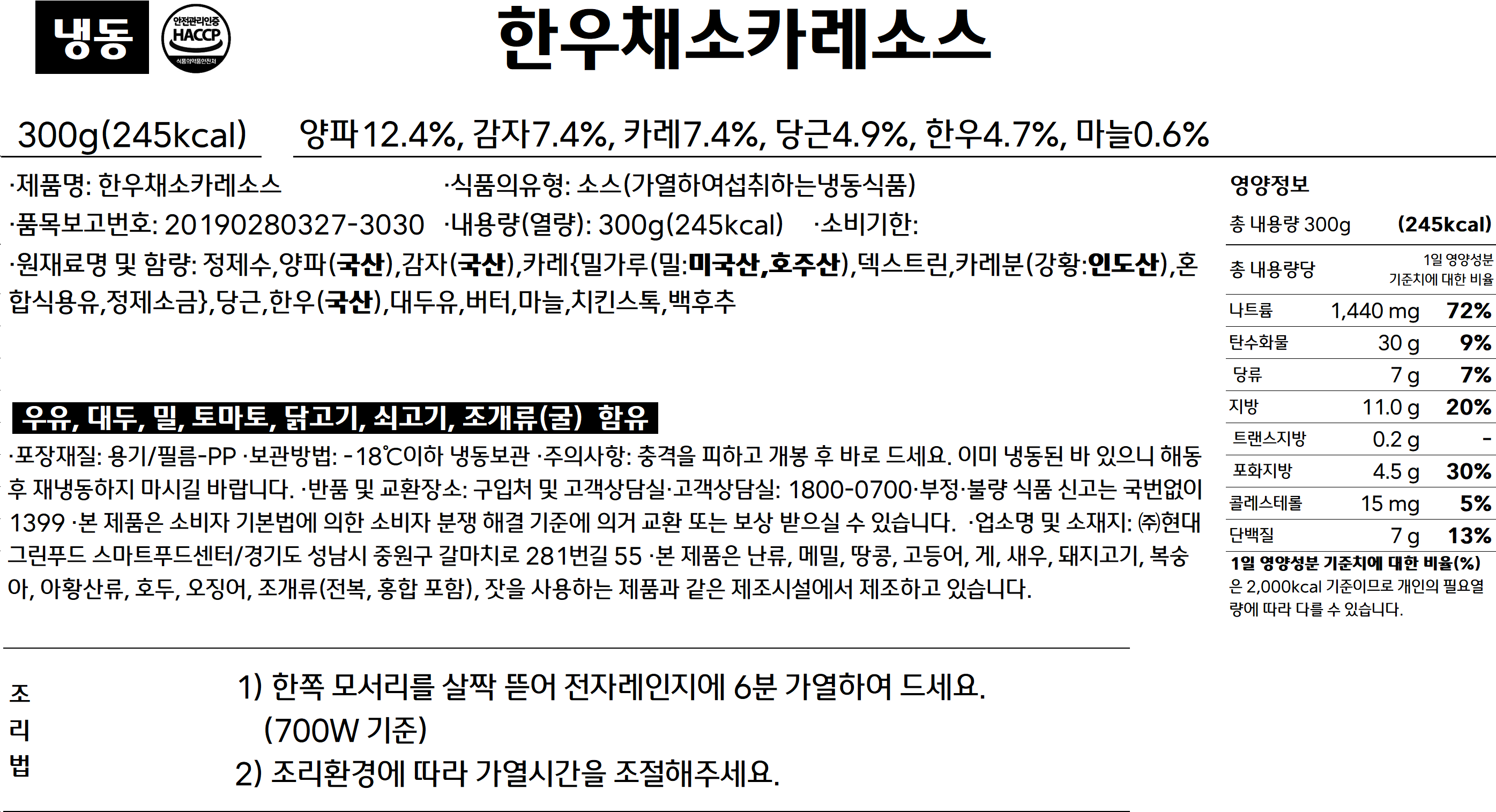 한우 채소카레 소스 300g