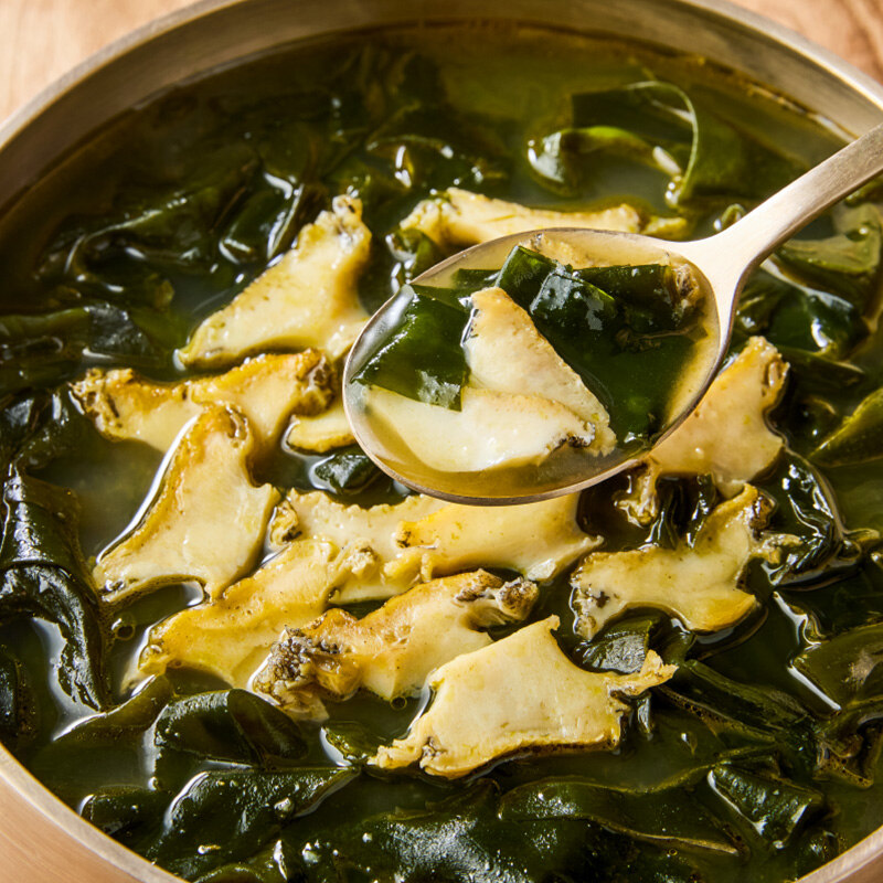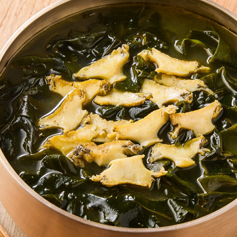 청정 바다 완도에서 자란 전복으로 요리한 미역국을 소개해요. 전복의 살과 내장을 함께 사용해 녹진한 풍미를 고스란히 담았고, 미역은 연하고 식감이 좋은 국산 건미역만을 골라 넣었어요. 국산 어간장으로 간을 맞춰 담백하면서도 은은하게 남는 감칠맛을 완성했답니다.
