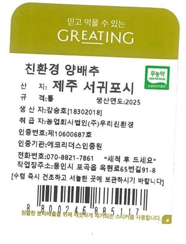 농약 없이 건강하고 정직하게 친환경으로 키워 낸 농부의 정성을 지금 그리팅에서 만나보세요.