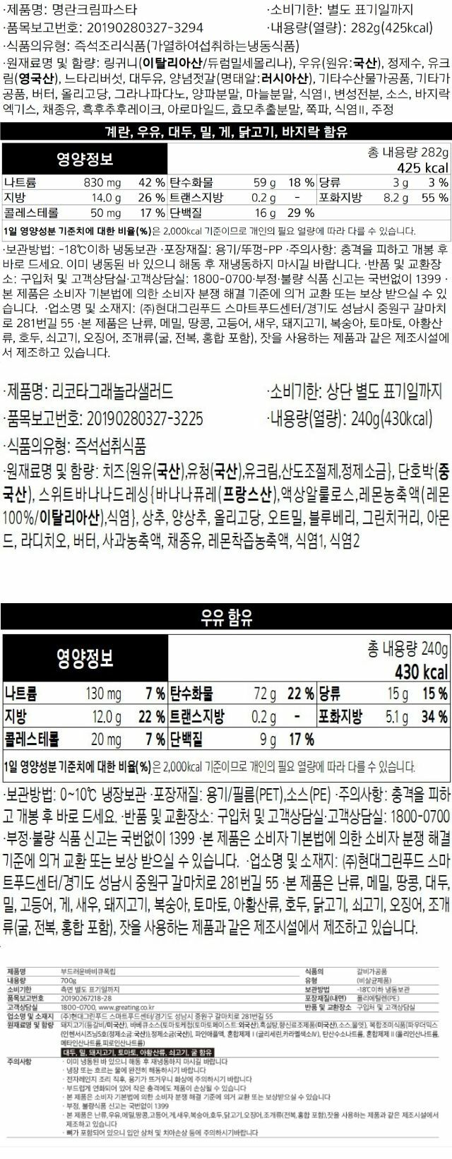 고소한 명란크림파스타, 촉촉한 폭립, 담백한 리코타샐러드
