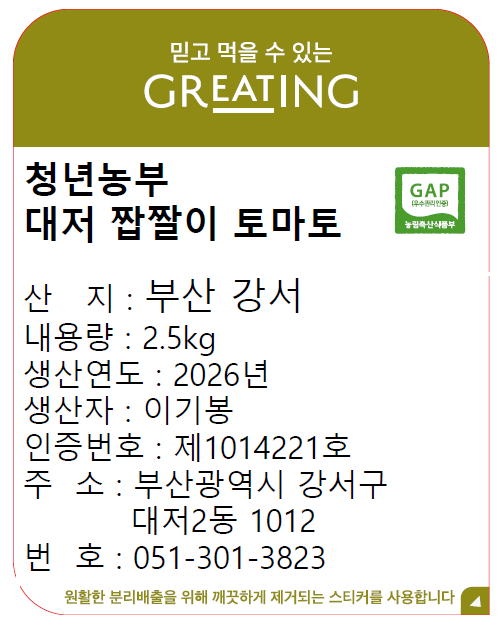 [사전예약] 부산 청년농부 대저 짭짤이 토마토 2.5kg