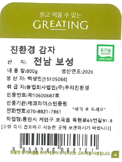 [그리팅] 친환경 감자 800g