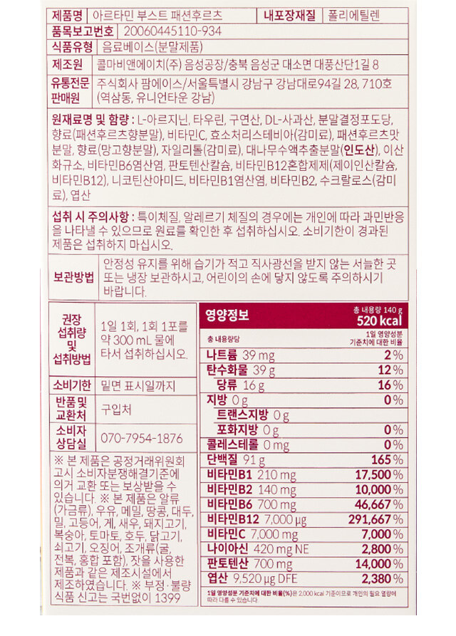 [체크오] 아르타민 부스트 패션후르츠 10g*14포
