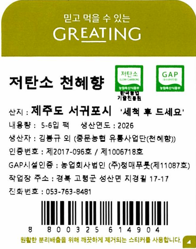 저탄소 인증 천혜향