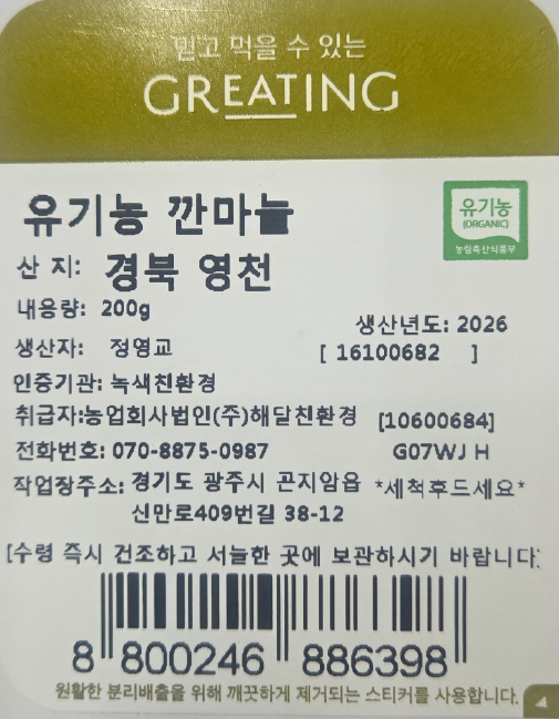 그리팅에서는 화학농약 없이 건강하게 재배한 마늘을 깨끗이 세척한 후, 드시기 편하게 꼭지를 제거하여 정성스럽게 담았답니다.