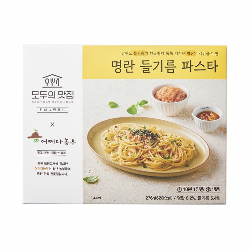 현대그린푸드, 와디즈, 전국 로컬 맛집 사장님이 모여 매장의 시그니처 메뉴를 간편식으로 개발해 고객님의 집 앞에 전달드리는 '모두의 맛집' 어쩌다농부 명란 들기름 파스타를 소개해요.