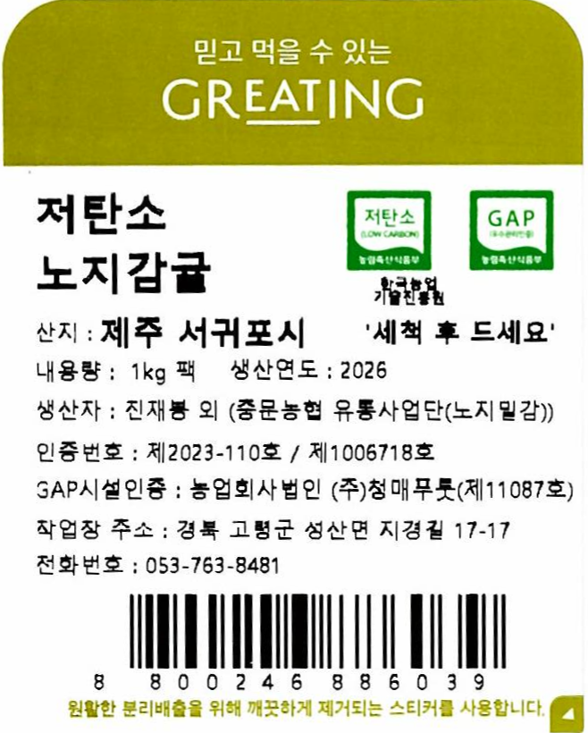 [그리팅] 저탄소 노지 감귤 1kg