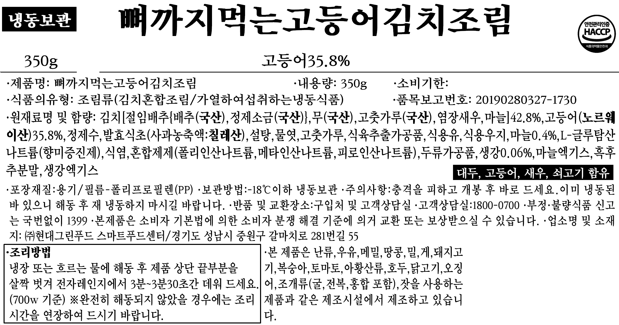 New! 뼈까지 먹는 고등어 김치조림 350g