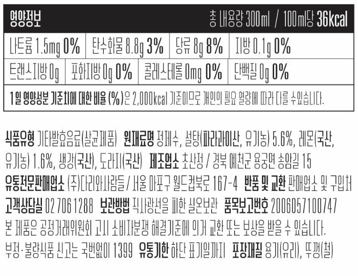 발효의 전통을 이어온 한상준 님이 정성으로 완성한 레몬 생강차 원액을 정제수에 희석하여 바로 마실 수 있도록 만든 음료에요.
