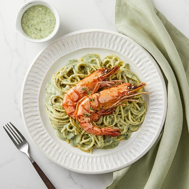 블랙타이거새우&포항초크림파스타에는 제철 포항초를 갈아 넣어 더욱 부드럽고 진한 감칠맛을 자랑해요. 파스타에는 튼실한 살을 자랑하는 블랙타이거 새우 두 마리도 통으로 푸짐하게 담았습니다. 간편하지만 고급스러운 그리팅 로맨틱 패키지와 함께 근사한 연말 홈파티를 연출해 보세요.