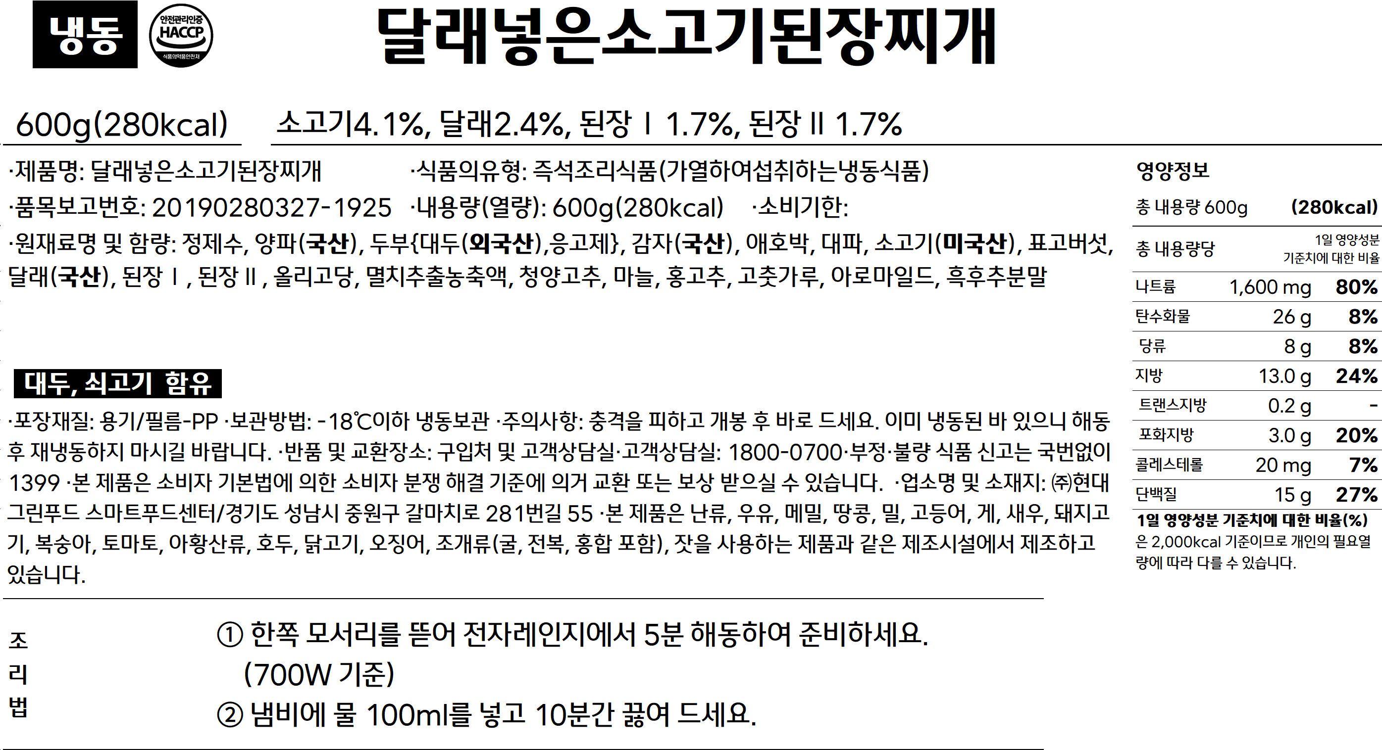 NEW 달래 넣은 소고기 된장찌개 600g