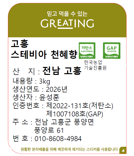 [사전예약] 고흥 저탄소 스테비아 천혜향 3kg