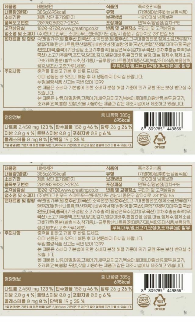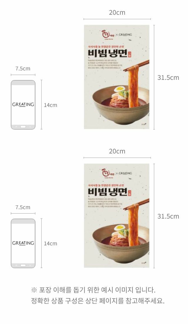 현대백화점에서 맛볼 수 있는 냉면 브랜드 '한솔냉면'과 그리팅이 함께 선보이는 비빔냉면입니다.