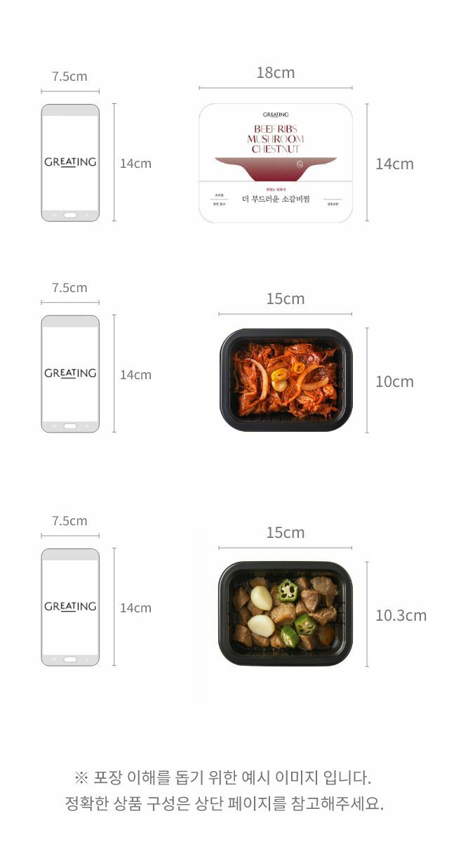 푹 고아낸 소갈비찜, 매콤하게 볶아낸 제육볶음, 부담없이 먹기 좋은 돼지고기 장조림까지 담았어요.