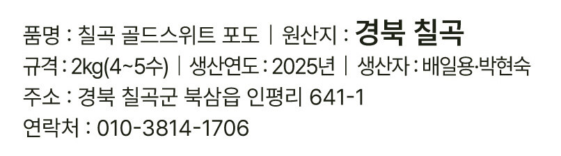 [사전예약] 칠곡 골드스위트 포도 2kg