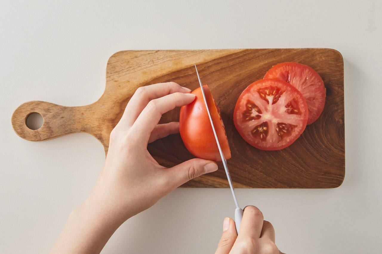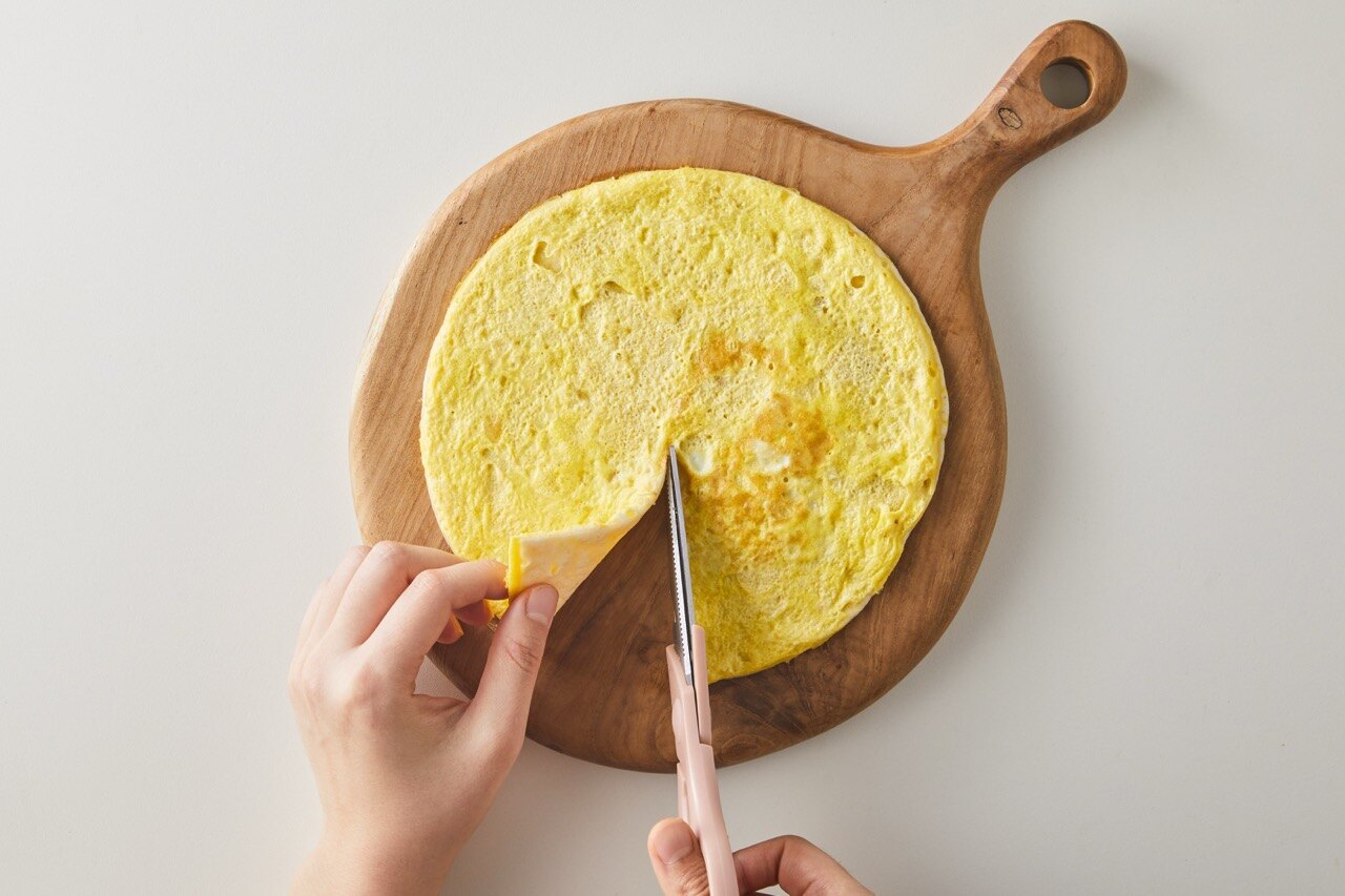 계란옷을 입은 또띠아의 아랫면을 절반만 잘라주세요.