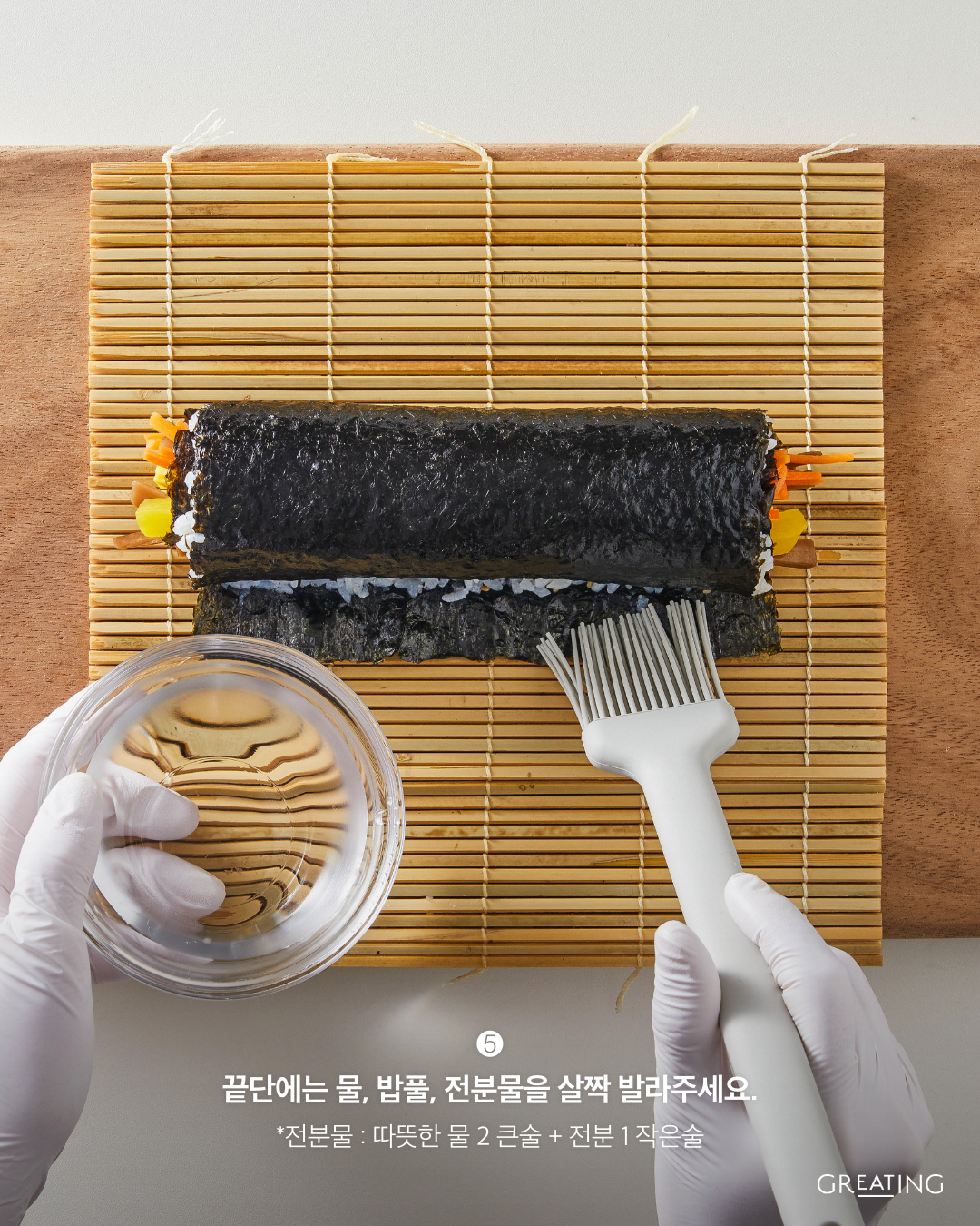 5. 끝단에 전분물 발라주기