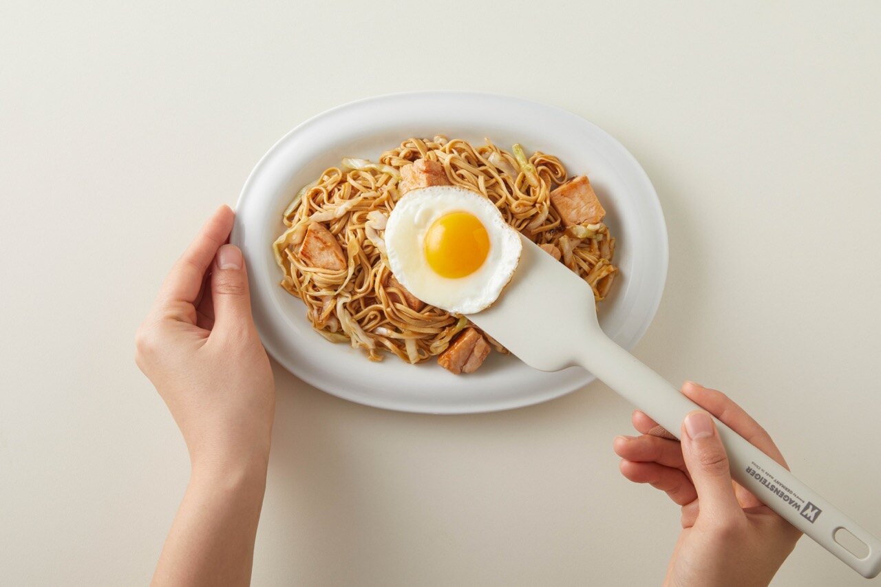 접시에 볶은 면을 담은 후 계란을 올려주세요.