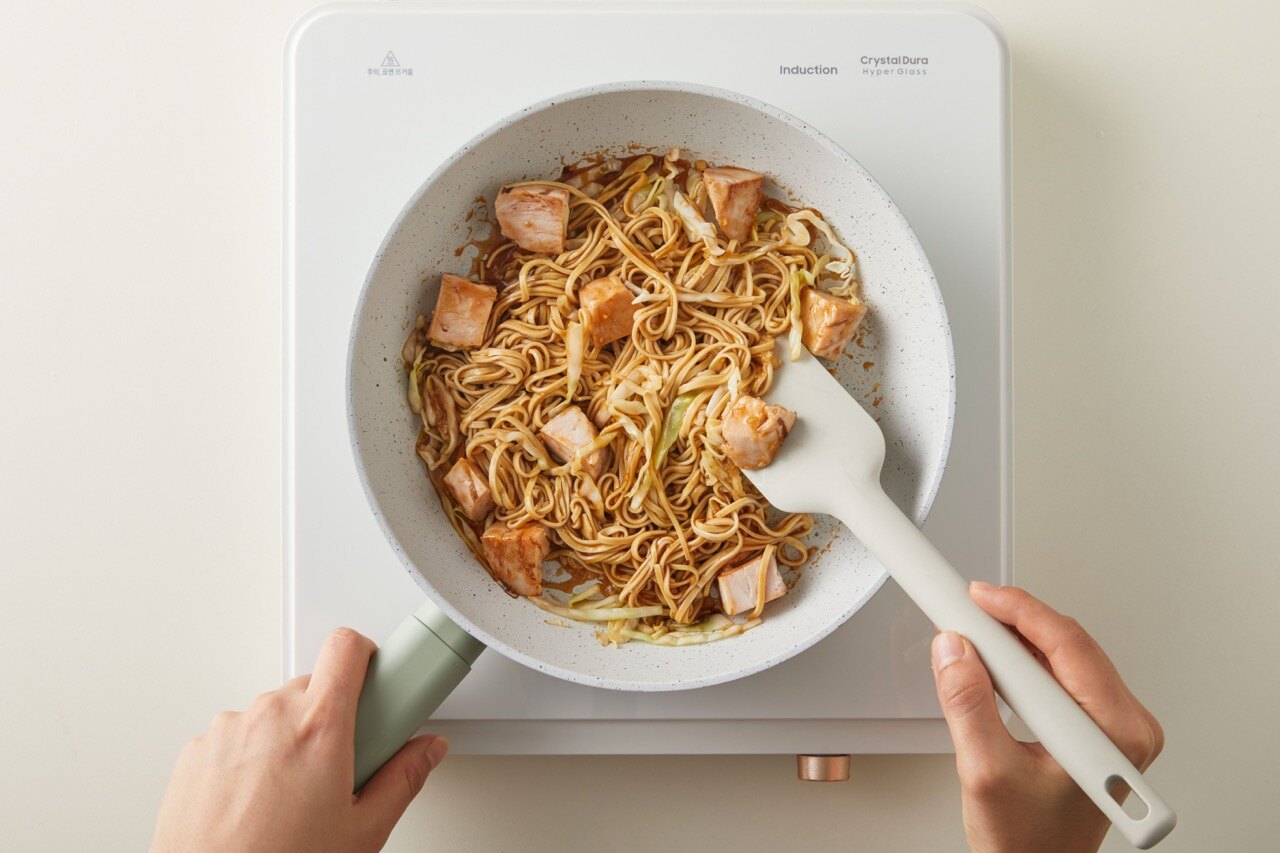 4번에 두부 면과 소스를 넣고 볶아주세요.