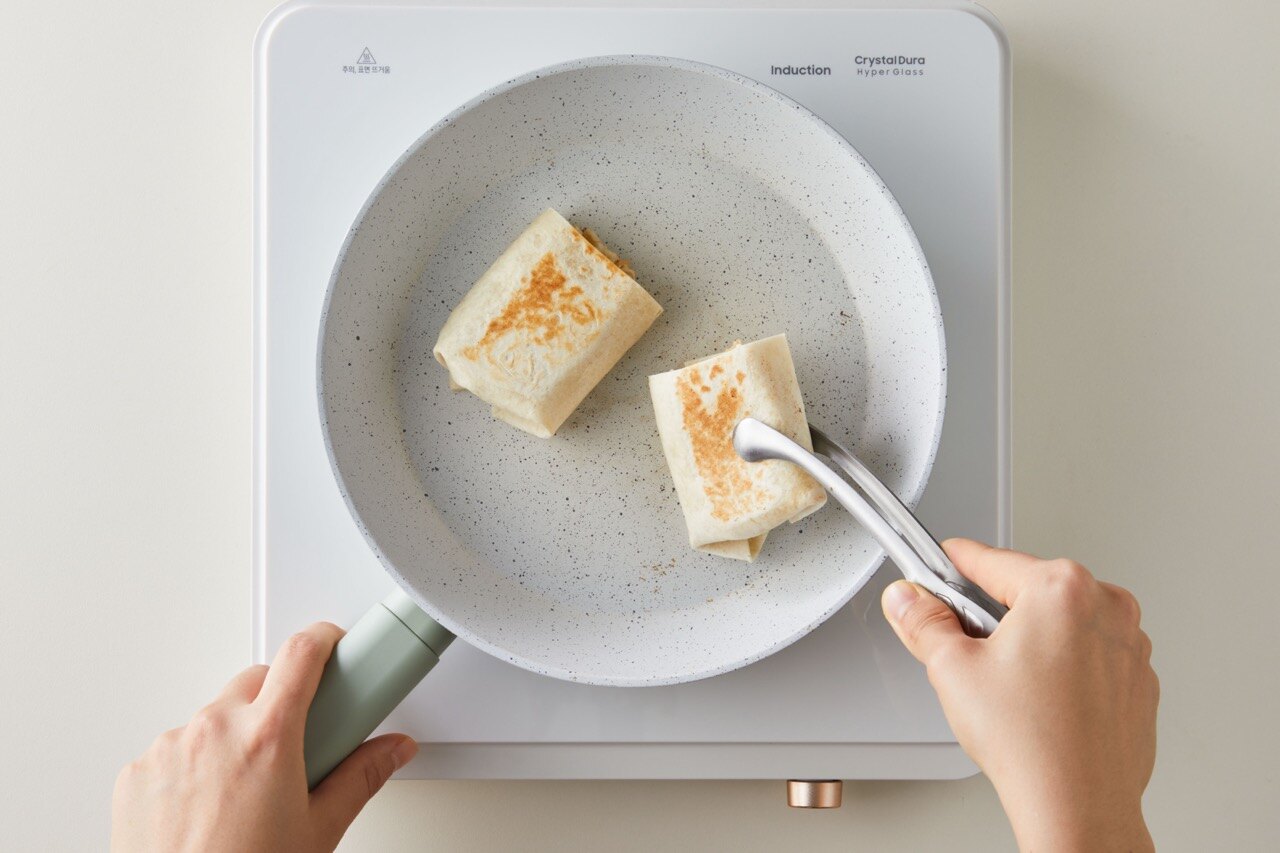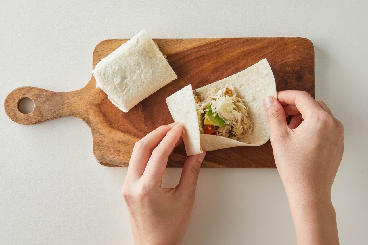 또르띠야를 돌돌 말아 속재료를 감싸주세요.