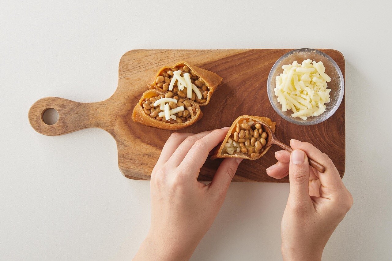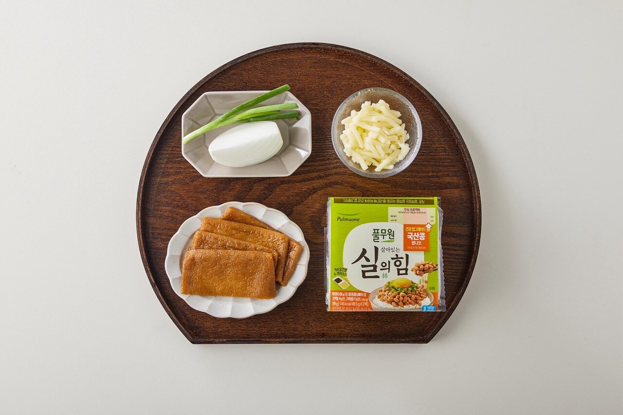 유부 안에 나또와 피자치즈를 알맞게 채워주세요.