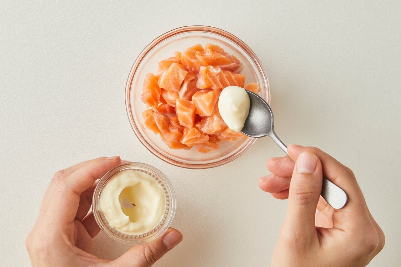 연어에 마요네즈를 넣고 잘 섞어주세요.