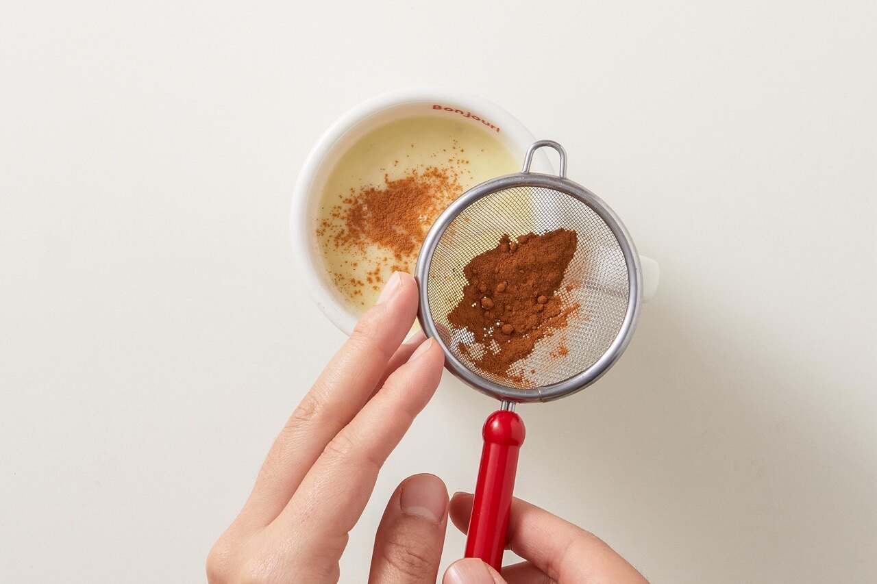 곱게 갈린 고구마 라떼를 머그컵에 부은 뒤, 취향에 맞게 시나몬 파우더 적정량을 뿌려 주세요.