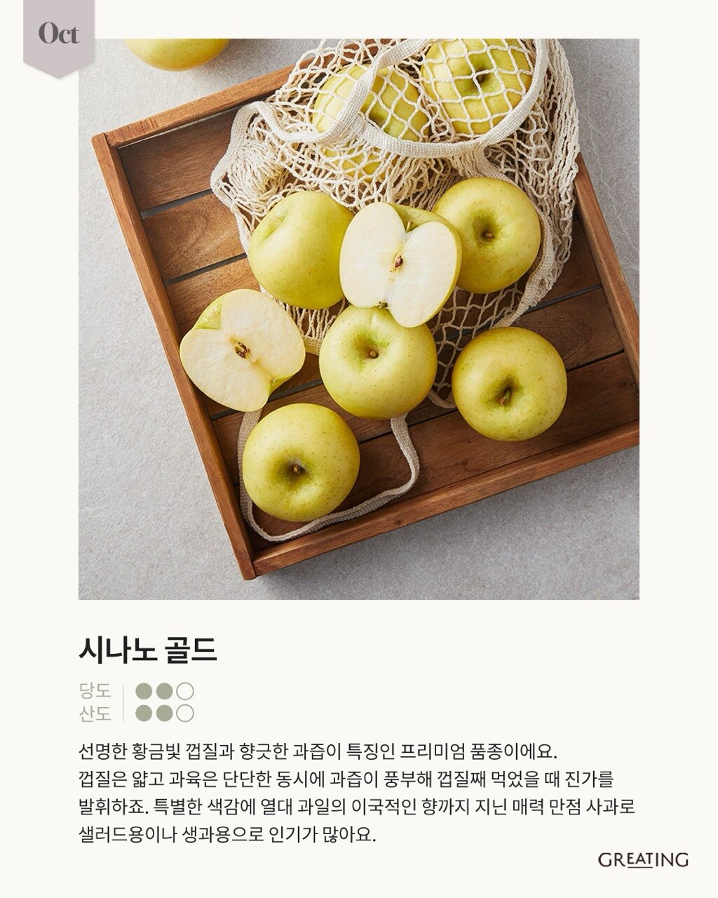 단단한 과육의 아삭한 식감, 달콤하면서도 새콤한 과즙,