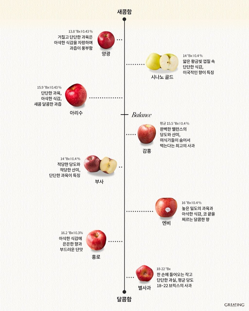 그래서 준비했어요! 맛을 가늠해볼 수 있는 사과 차트부터