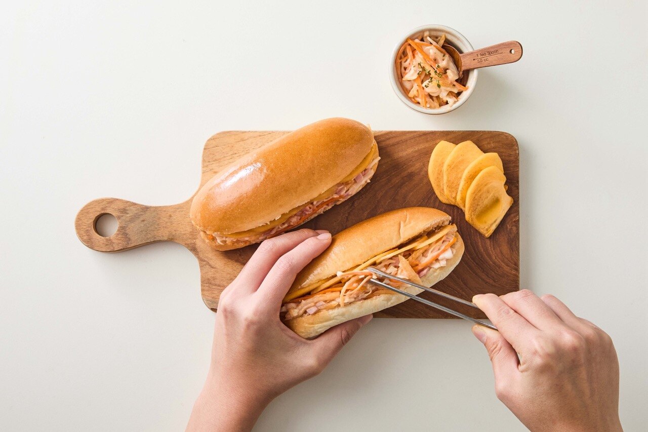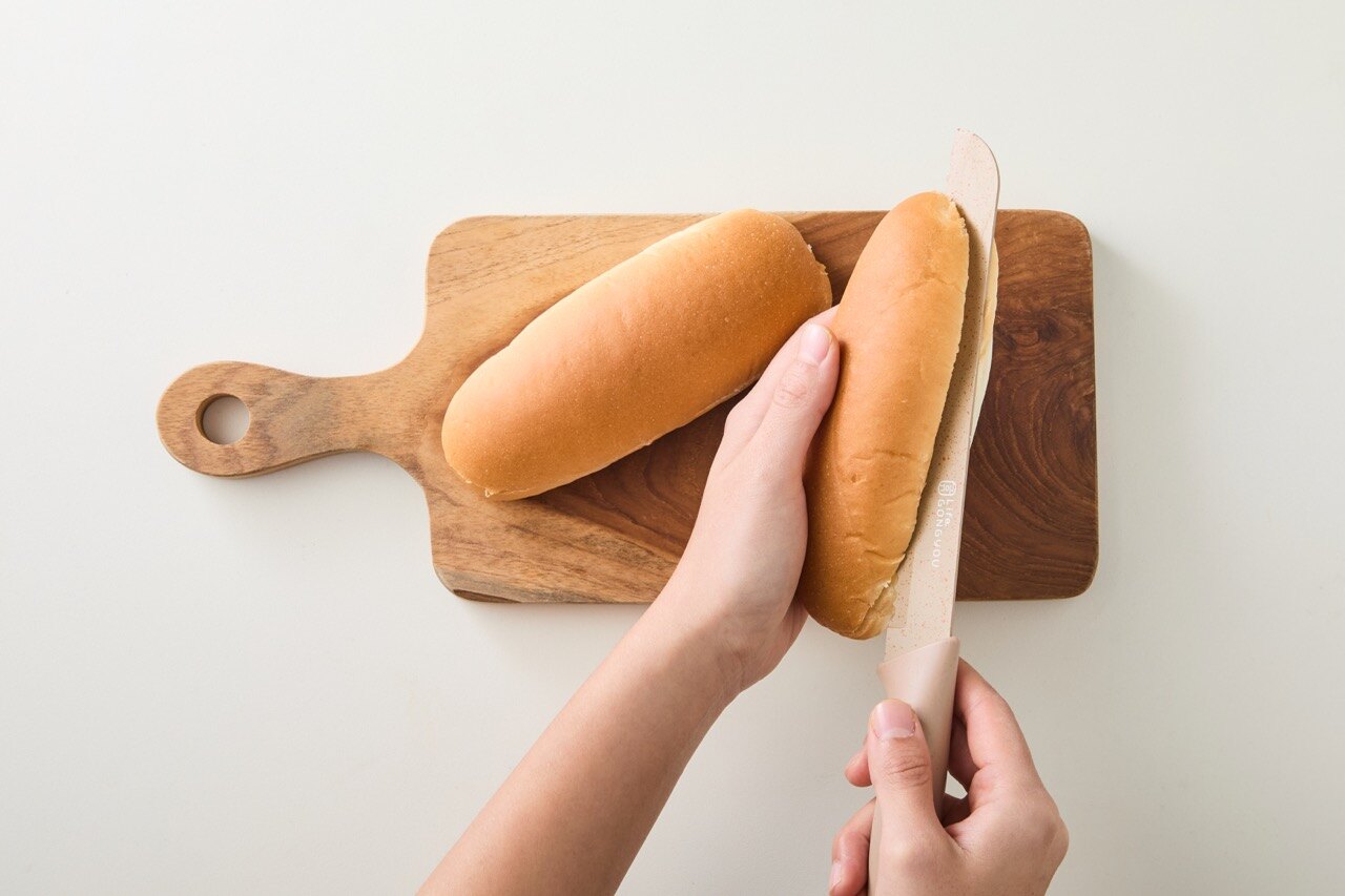 핫도그빵 가운데에 칼집을 넣어 주세요.