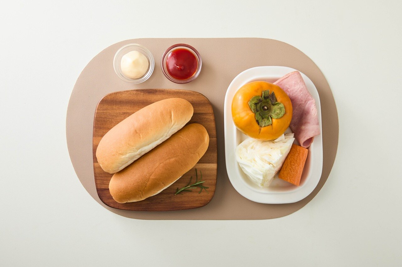 빵 안에 버무려둔 야채와 단감 슬라이스를