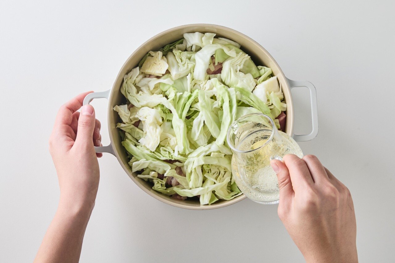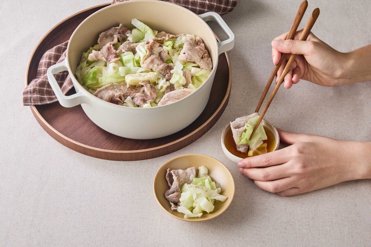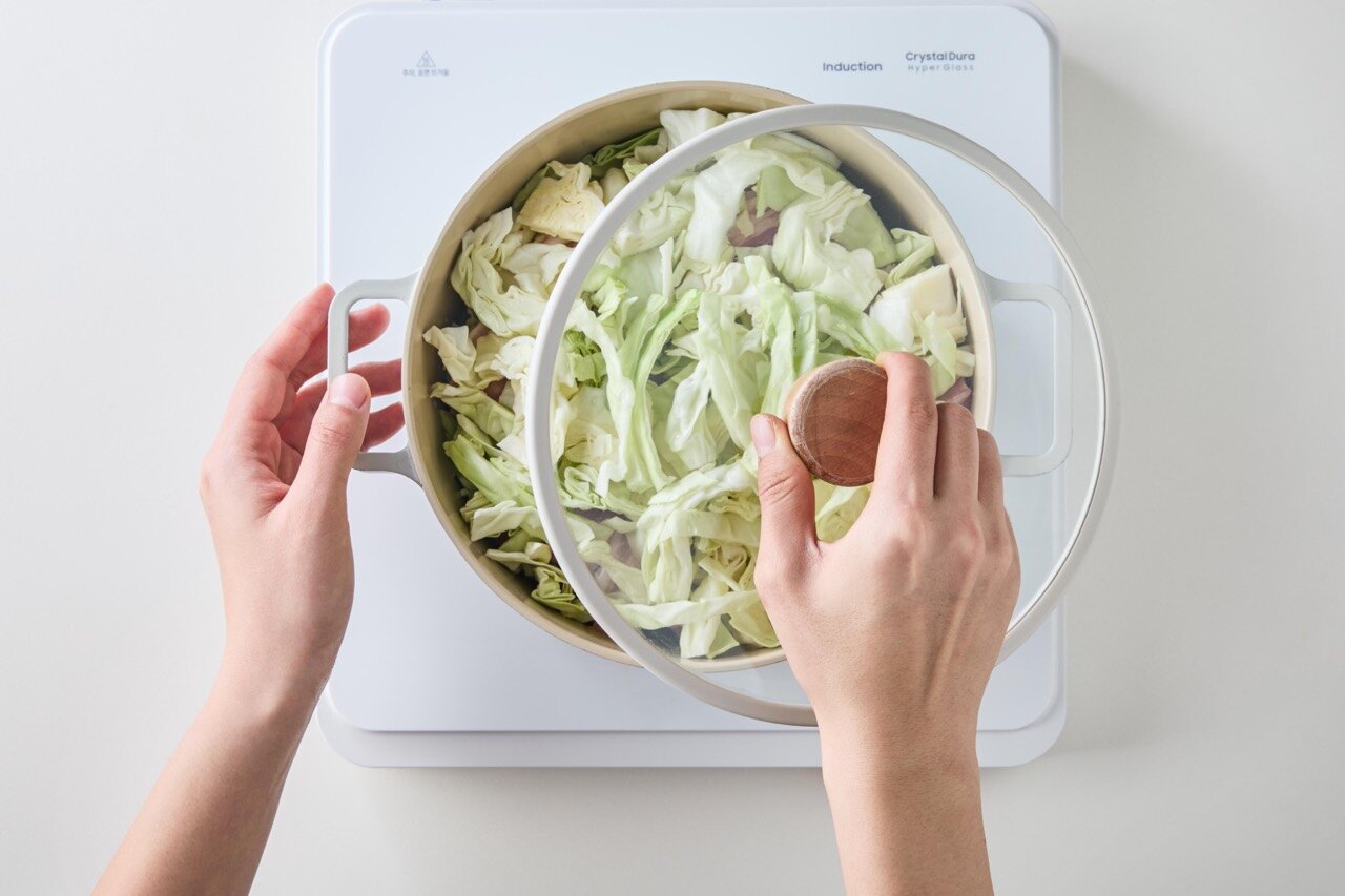 양배추 → 소금, 후추 → 삼겹살 순으로 반복해 층층이 쌓아주세요.