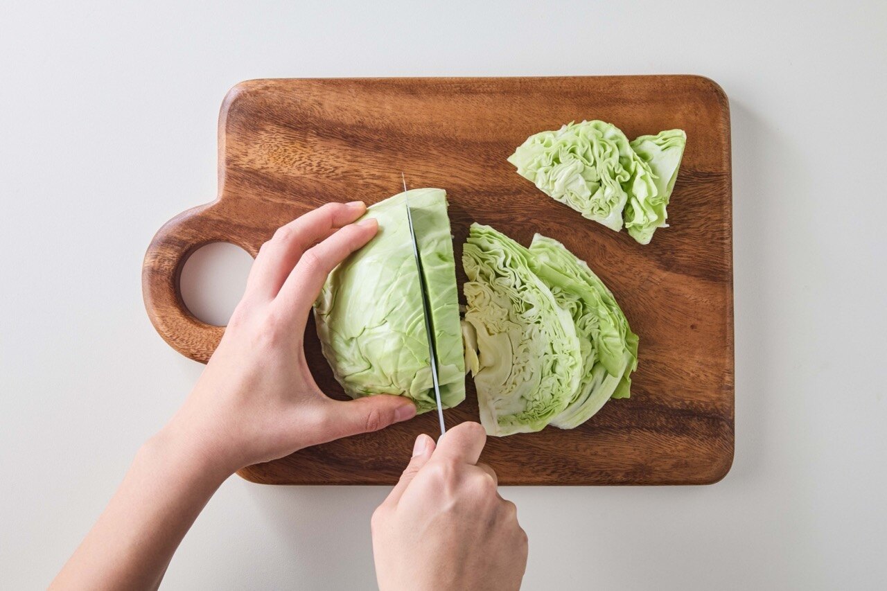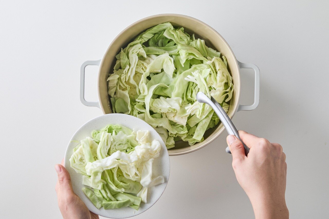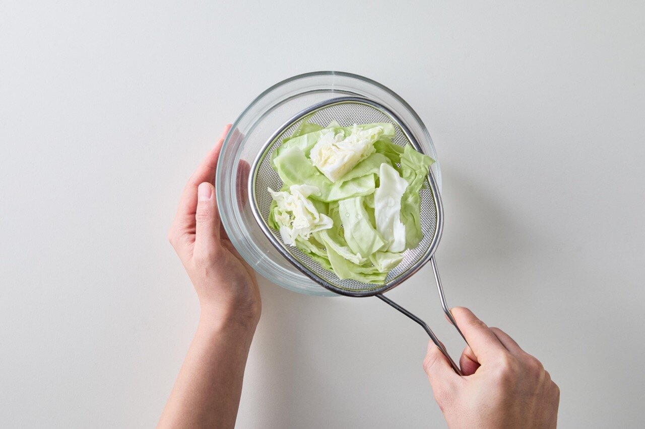손질한 양배추는 흐르는 물에 씻은 뒤 물기를 제거해주세요.