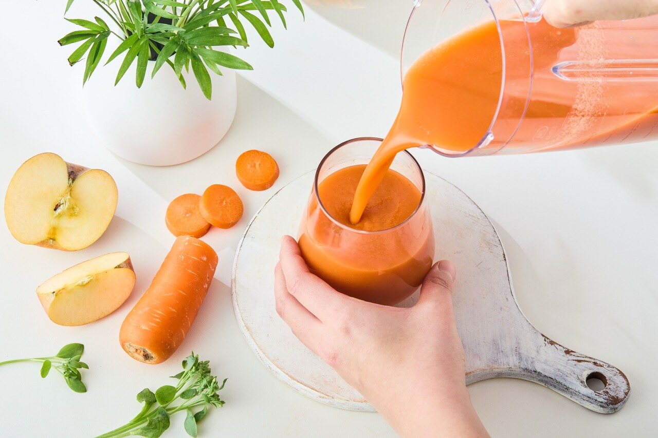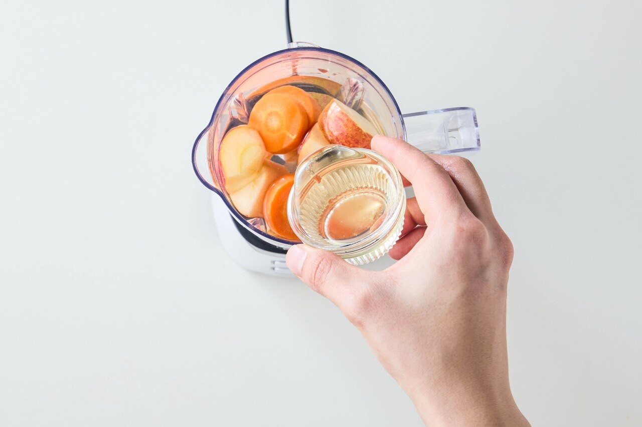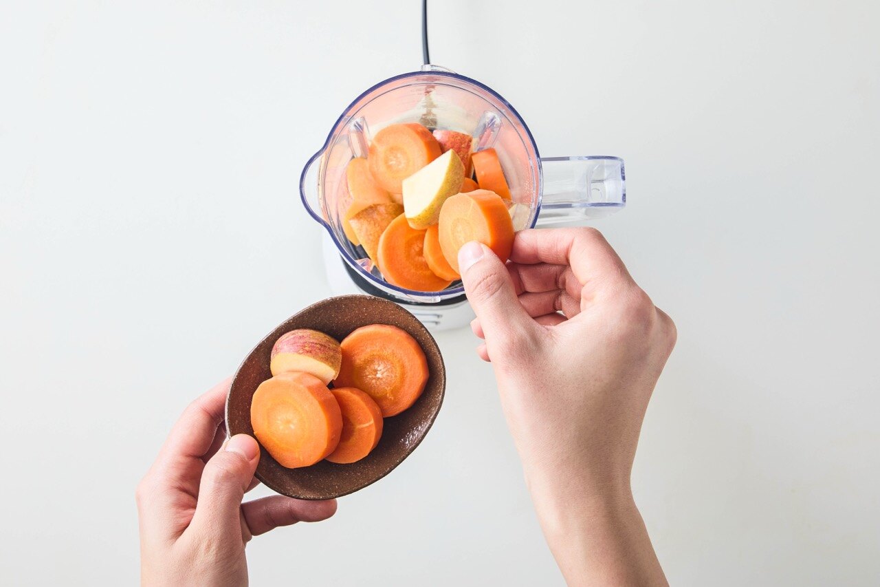 믹서기에 식힌 당근과 사과를 넣어주세요.