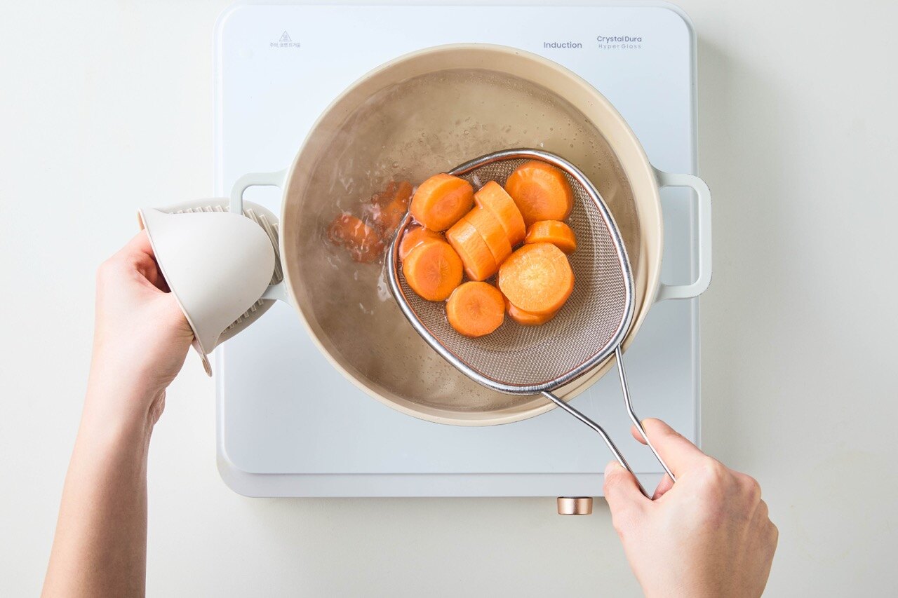 끓는 물에 당근을 2~3분 데친 뒤,