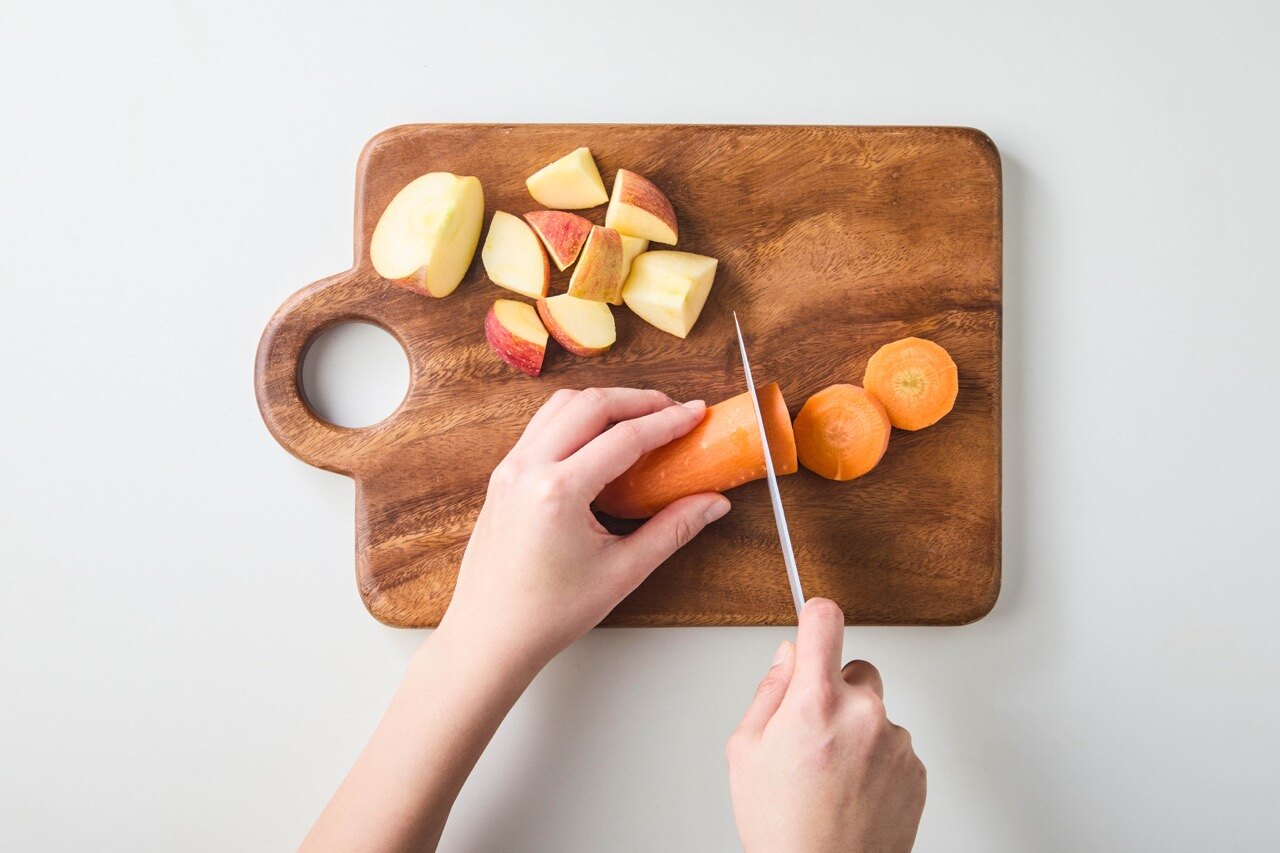 당근과 사과를 깨끗이 씻고,