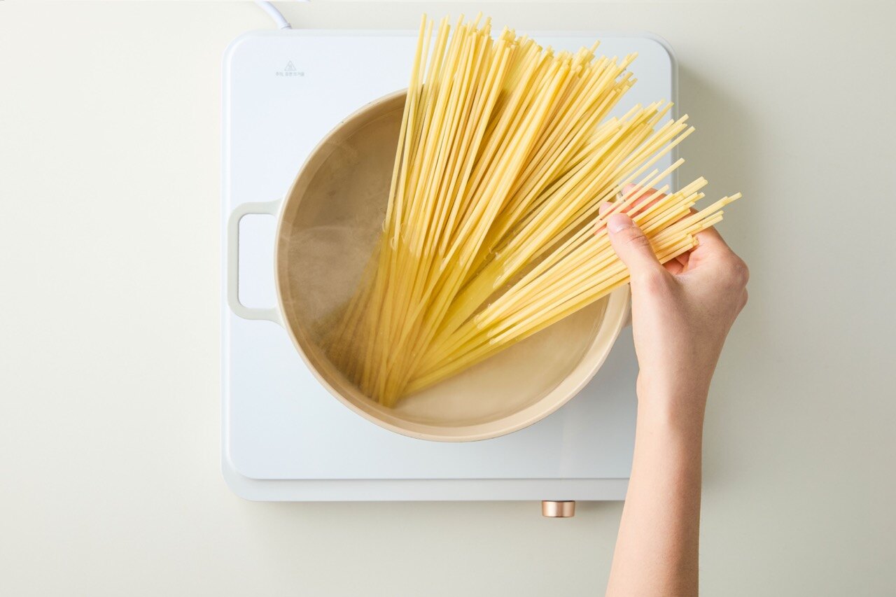 끓는 물에 소금을 넣고 링귀니면을 약 10분간 삶아주세요.
