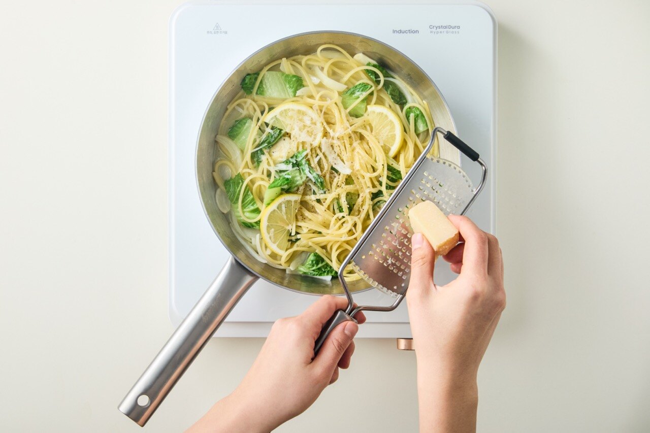불을 끈 뒤 그라다 파다노 치즈를 넣고, 소금과 후추로 간을 맞추면 완성입니다.