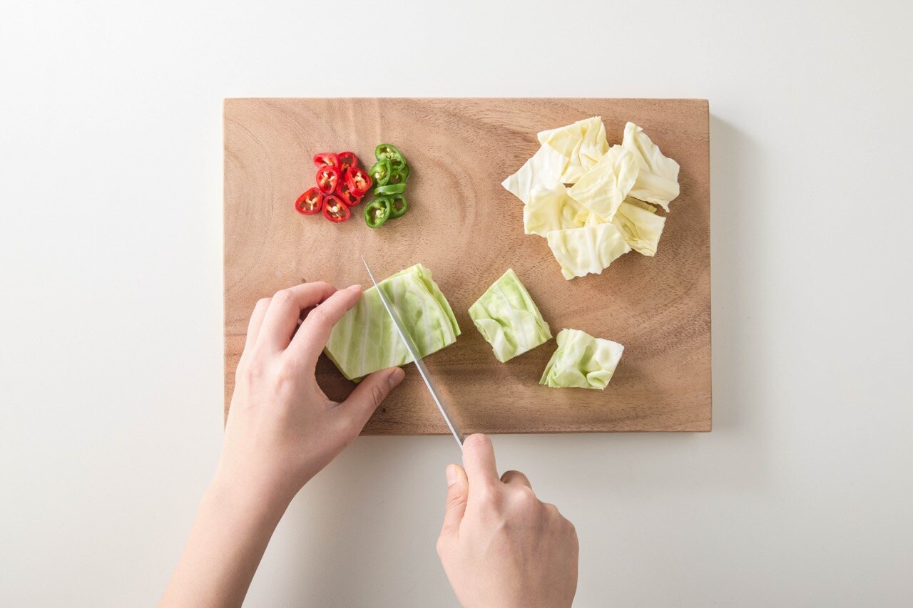 깨끗이 세척한 양배추는 큼직하게 썰고,