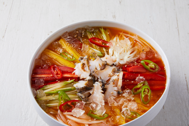 *조리 전 냉면 육수를 냉동고에 넣어 살얼음 상태로 만들어 주세요.