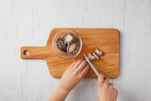 전복은 깨끗하게 세척, 손질한 뒤 슬라이스로 썰어 주세요.