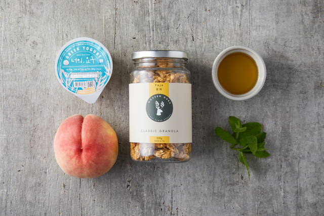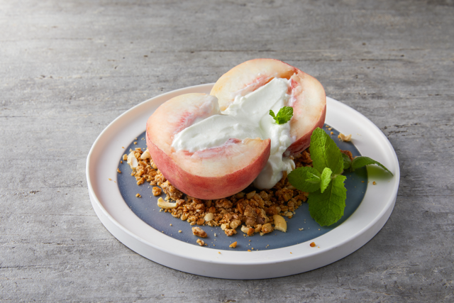 달콤한 과즙이 흐르는 말랑한 복숭아의 씨를 파내고 꾸덕한 그릭요거트를 채워 주세요. 차갑게 굳혀만 주면 근사한 홈 디저트 요리가 완성돼요.