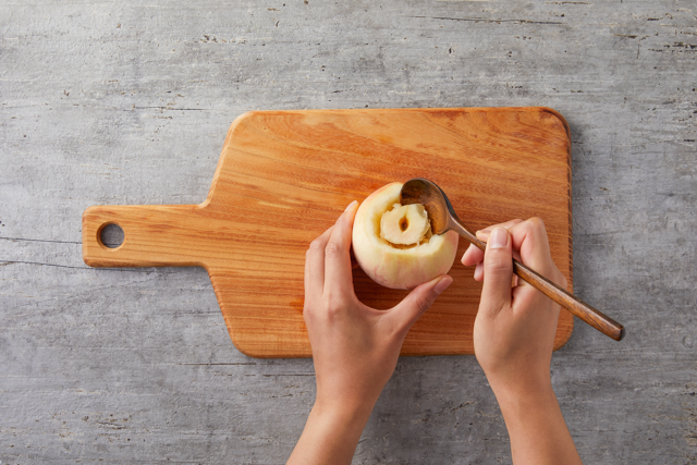 숟가락이나 가위를 활용해 씨 부분을 제거해 주세요.