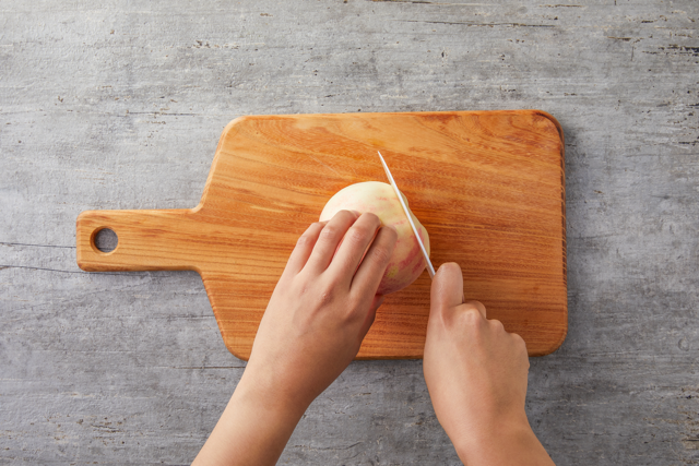 복숭아 꼭지 부분을 평평하게 잘라내고,