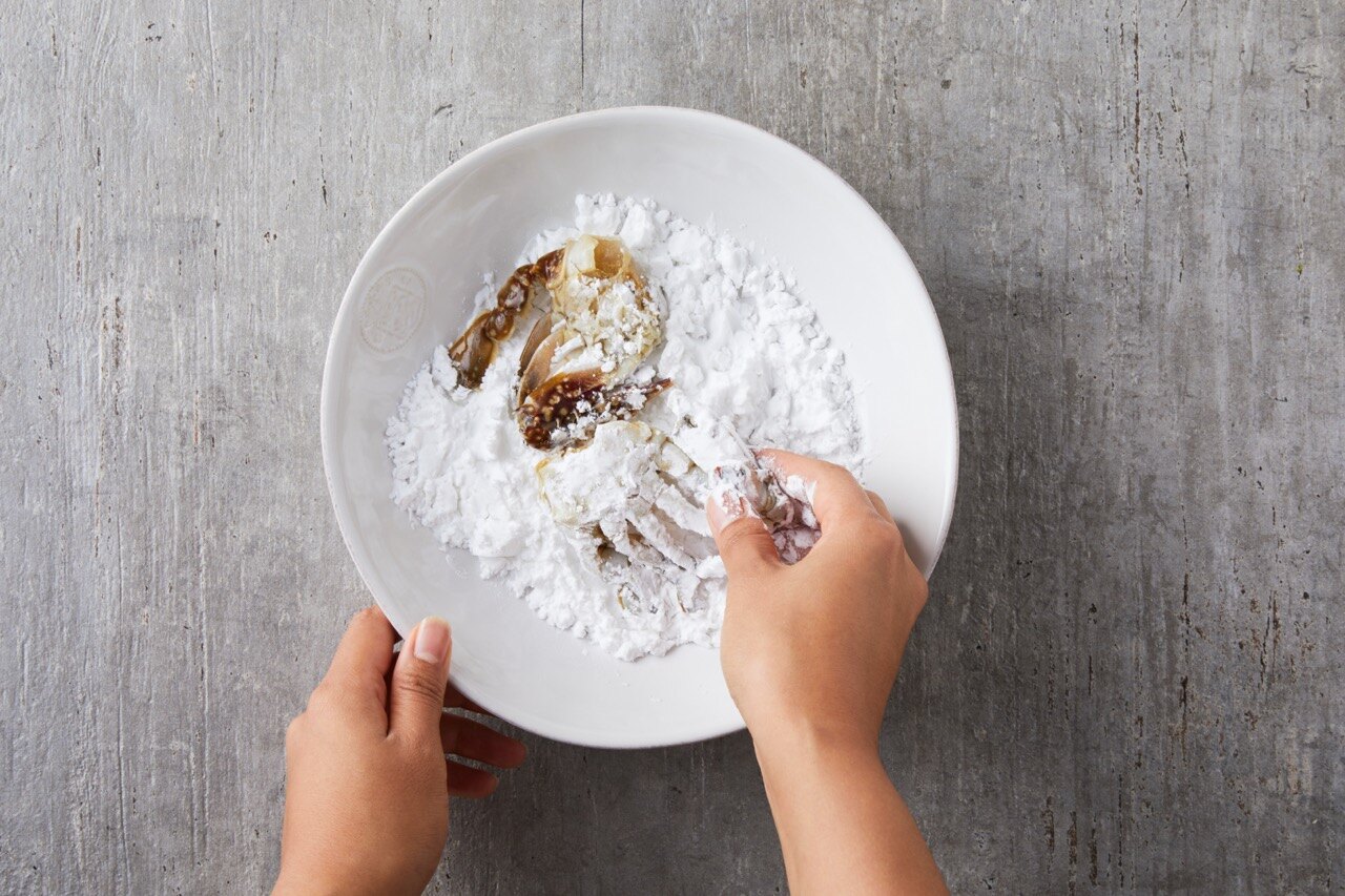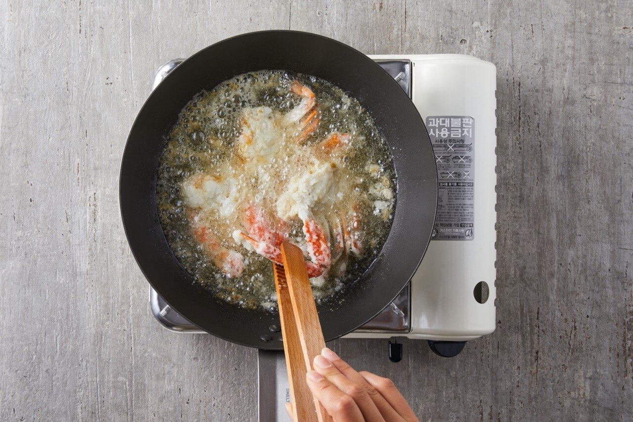 전분가루를 묻힌 꽃게를 노릇하게 튀겨주세요.