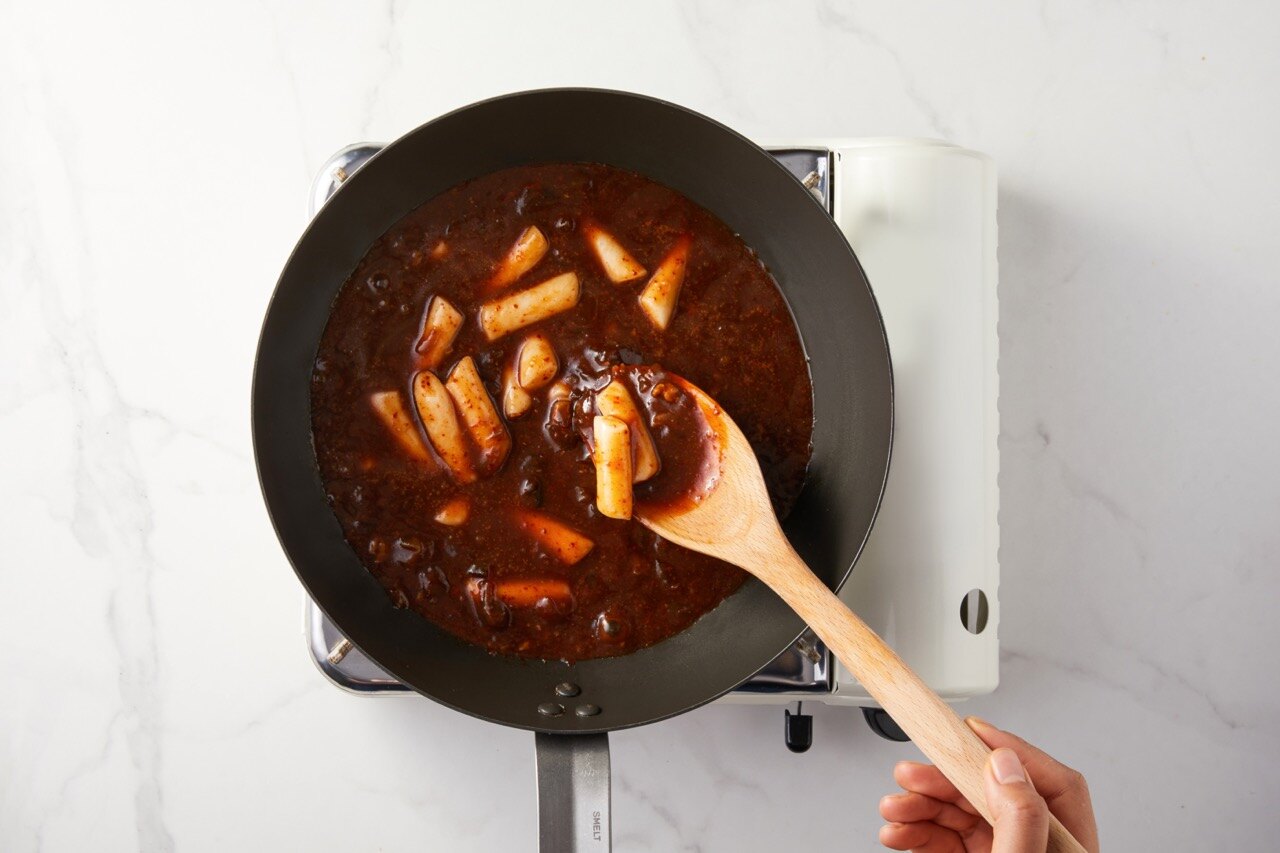 양념이 끓기 시작하면 떡볶이 떡을 넣고 푹 졸여 주다가,