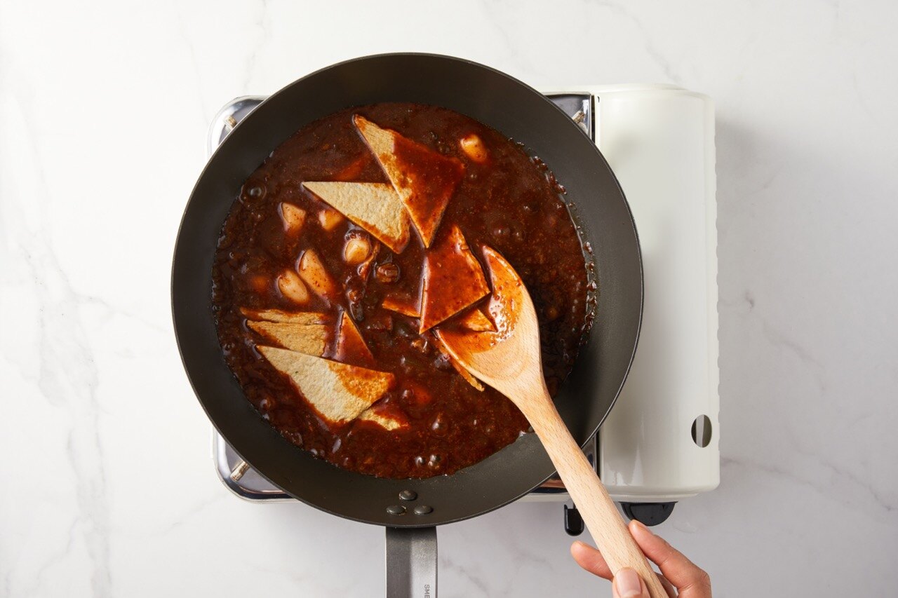 먹기 좋게 썬 어묵을 넣어 간이 잘 배이도록 저어주세요.