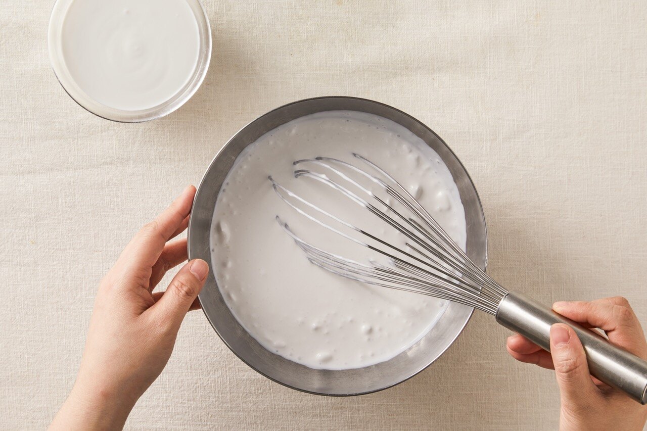 뿔이 생길 정도로 단단하게 휘핑해 주세요.